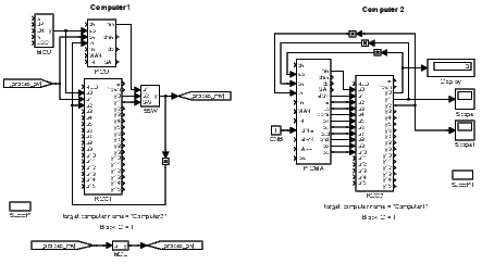 počítači mezi dvěma Simulinky nebo Simulinkem a systémem REXYGEN). Hodnoty se
