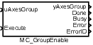 The function block MC_GroupEnable changes the state for the group uAxesGroup from "GroupDisabled" to "GroupStandby".