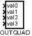 Řídicí systém REXYGEN umožňuje kromě zápisu každého jednotlivého výstupu z řízeného procesu také současný zápis několika signálů jedním blokem (například výstupů celého modulu nebo zásuvné desky). Pro popsaný způsob nastavování výstupů slouží bloky OUTQUAD, OUTOCT a OUTHEXD, které se od sebe liší pouze maximálním počtem současně zapisovaných signálů (po řadě 4, 8 a 16). Tyto bloky nemají obdobu v knihovně RexLib pro systém Matlab-Simulink.