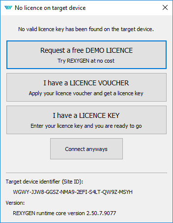Each device running the RexCore runtime module is identified by the so-called SiteID tag. The purchased licence must be associated with the hardware device, i.e. with the SiteID tag.